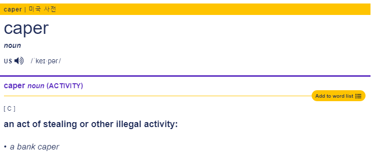 케이퍼는 내가 알던 절인 열매인 동시에 하이스트와 비슷한 뜻을 가지고 있었다.