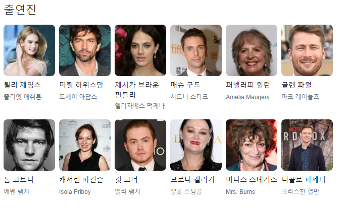 북클럽 회원 중 가장 나이 많은 에벤 램지역의 톰 코트니며 매슈 구드 퍼넬러피 윌턴, 제시카 브라운 주인공 릴리 제임스며 미힐 하위스만 등 내로라하는 영국 영화 속 거장들이 포진하고 있습니다.
