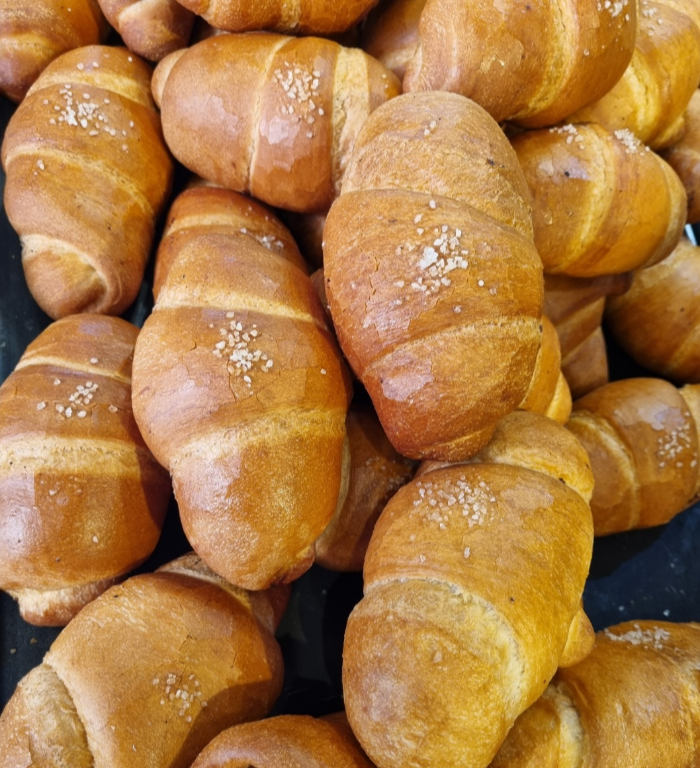 버터를 베이스로 소금의 짭조롬한 맛을 더해 빵의 풍미를 더합니다. 버터롤 모양을 하고 빵의 표면에 굵은 소금들이 뿌려져 있습니다. 구워진 빵의 표면은 바삭하고 속은 촉촉한 것이 특징입니다.