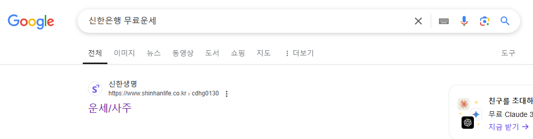무료운세만 쳐도 신한은행 사이트가 맨 처음 상위에 있습니다.