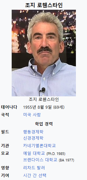 조지 로웬스타인은 소설을 쓸때 이야기의 긴장감을 만드는 요소들을 말해준 행동경제학자입니다. 위키 피디아에서 그의 모습과 주요이슈를 캡쳐해보았습니다. 그의 주요 이론들은 영화 소설 뿐 아니라 마케팅 전반에 영향을 주고 있다고 알려져 있습니다.