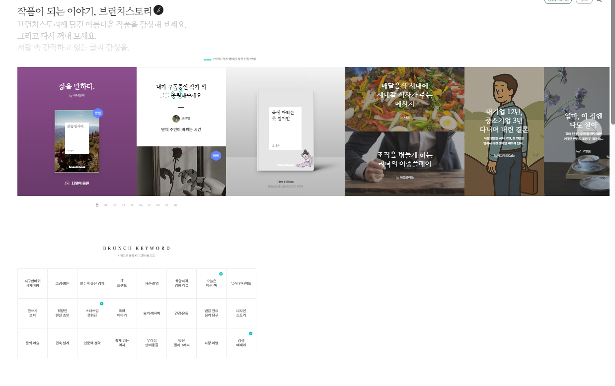 | 매거진/브런치북 | 주제별 연재(매거진), 완성형 전자책(브런치 북) |
