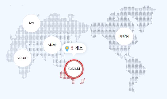 대륙별 세종학당 분포 (재단 공표 기준)