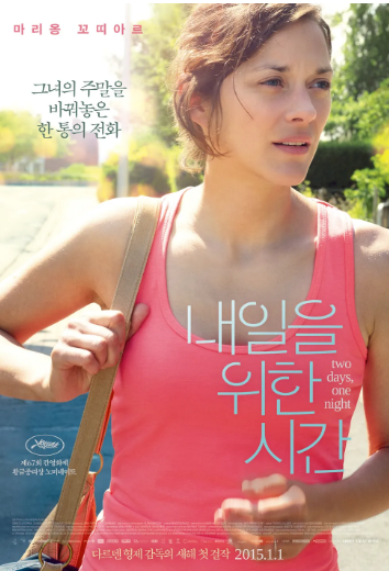 이 영화! 정말 좋았습니다. 마리옹 꼬띠아르-세계 최고의 미인으로 꼽힌 바 있다는-의 주말 하룻밤의 행적을 따라가는 이 영화 속에 살기 위한 노동시장에서 자기 일자리를 지키기 위한 신념과 분투를 정말 잘 그려졌습니다.