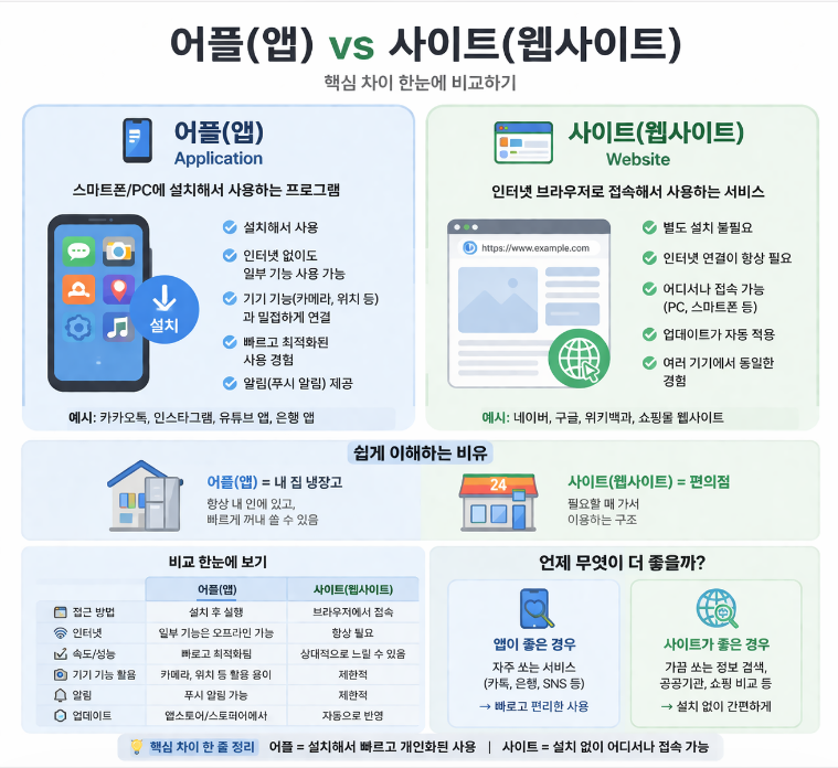 📱 앱이 좋은 경우 : 자주 쓰는 서비스 (카톡, 은행, SNS)
