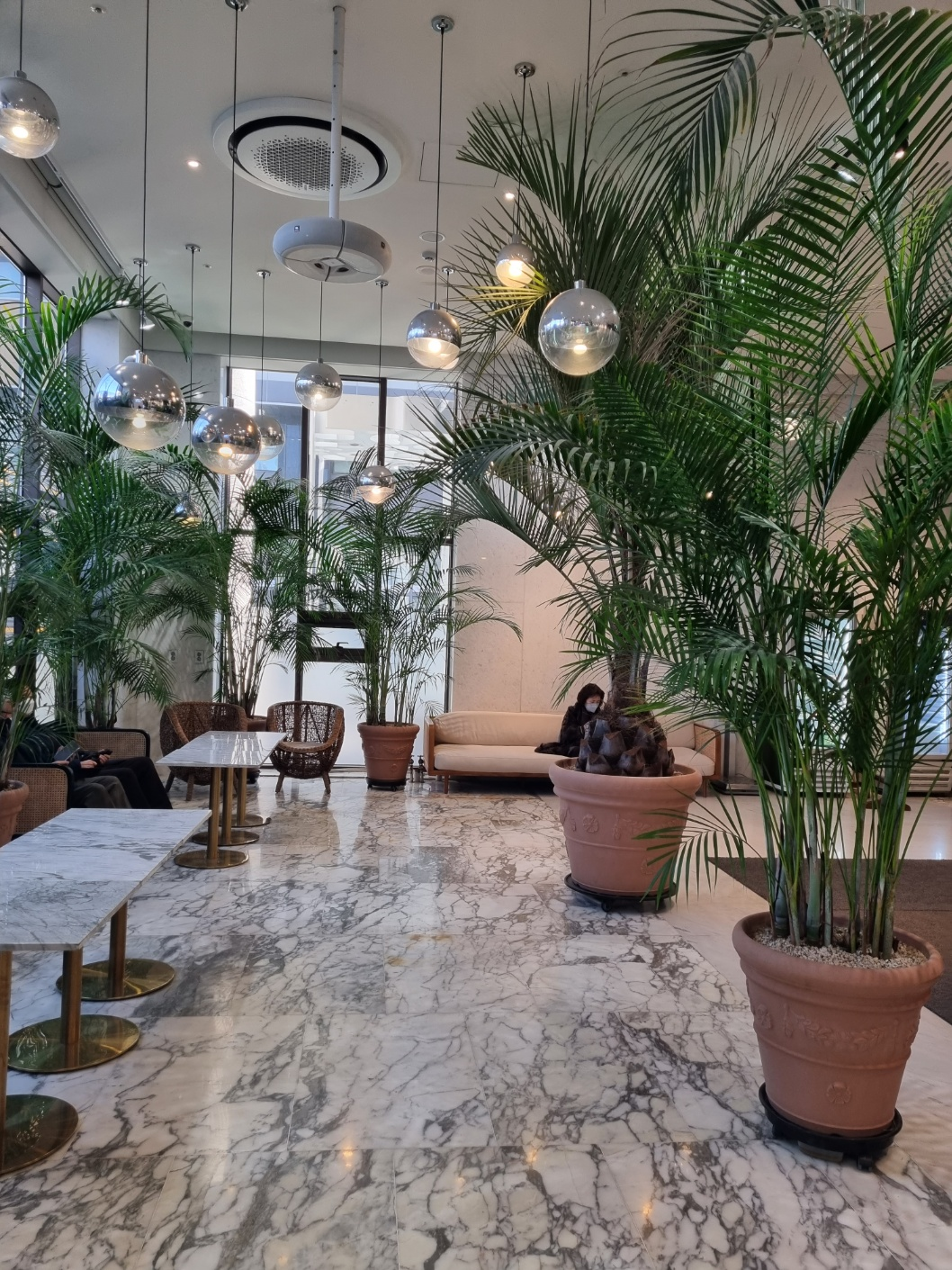 작은 호텔은 13층옥상정원까지 갖추었고 비행기의 문 형식에 자동센서까지 갖춘 화장실까지 나름 괜찮은 호텔이었습니다. 프런트 앞 휴게장소에는 세미나에 참석하는 중년의 지긋한 신사들이 핸드폰을 보거나 담소를 나누고 있습니다.